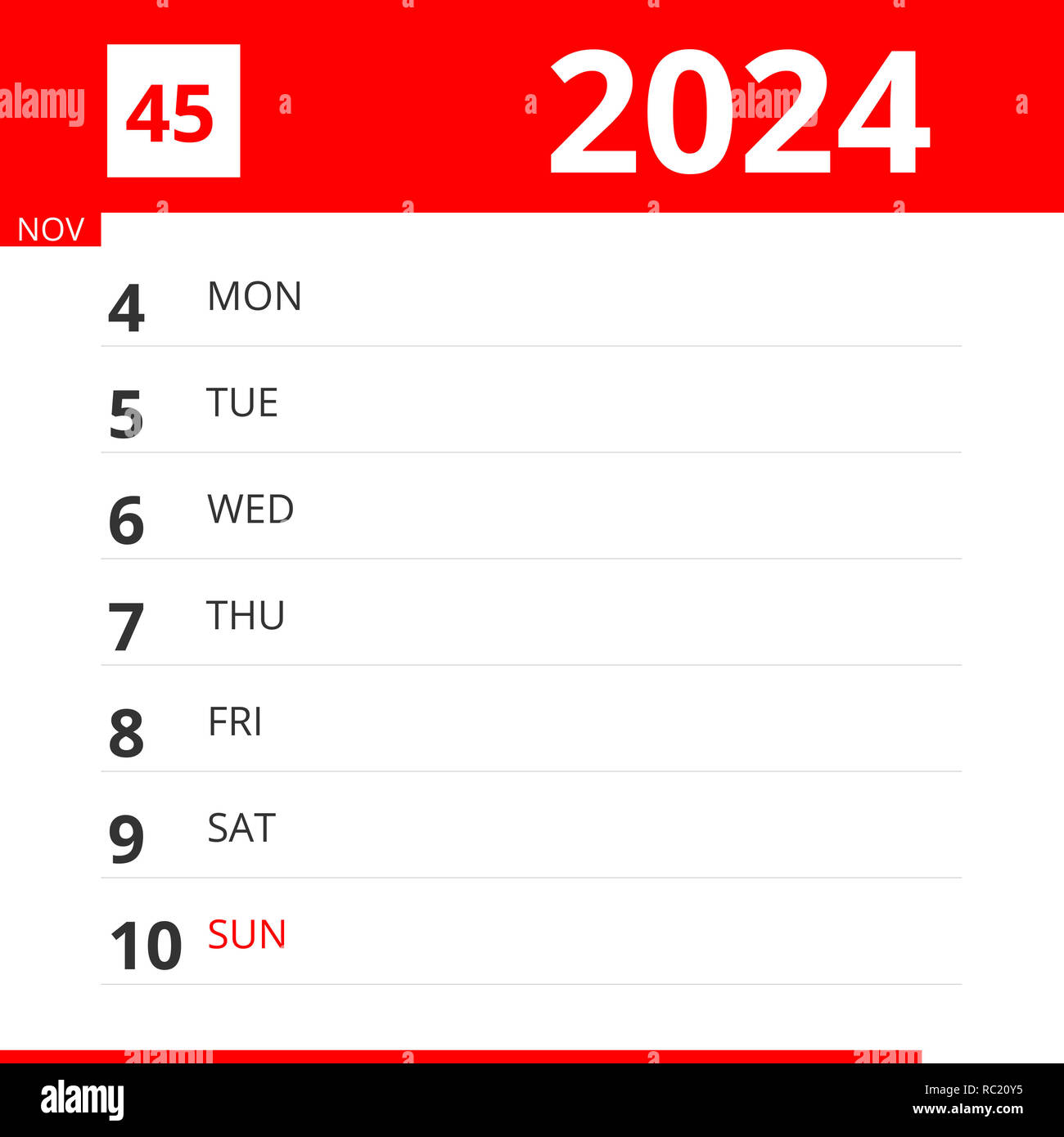 Calendar planner for Week 45 in 2025, ends November 10, 2025 Stock